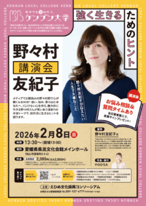 2026年2月8日(日)に開催いたします「第3回ケンブン大学~野々村友紀子氏講演会」のチケット取扱いプレイガイドについて、以下のとおりお知らせいたします。